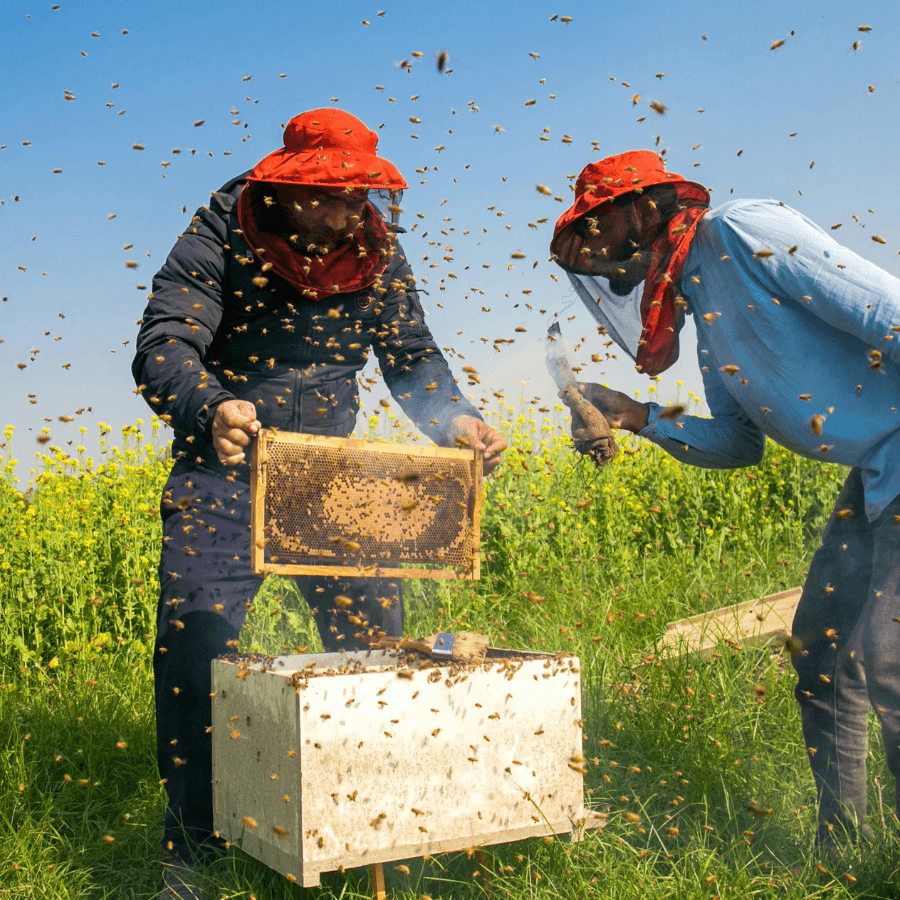 Bee boxes are strategically placed in specific plantations, allowing bees to collect nectar from the same floral source—creating unique flavours and textures.